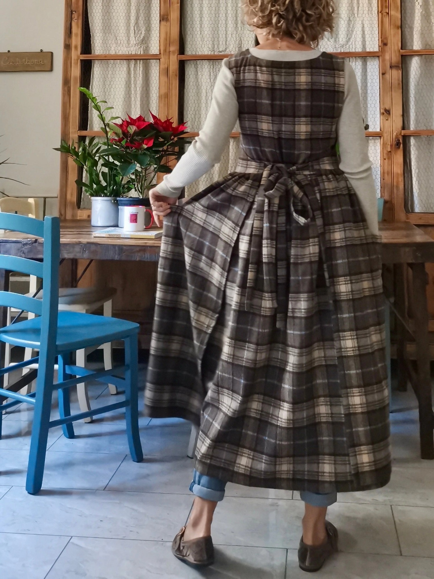 Sky Blue and Grey Tartan Cotton Kitchen Apron