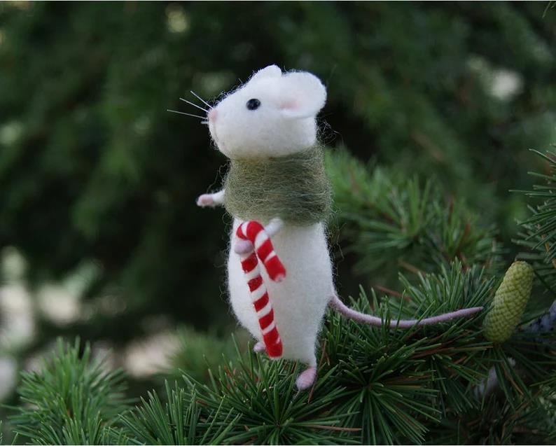 This little Christmas mouse is so cute and joyful. He has a scarf and holds a candy cane in his paw. He will definitely bring the Christmas spirit in your home.