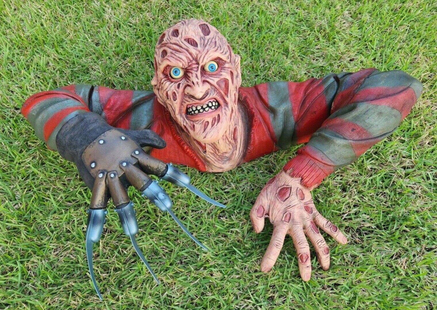 If you want to scare unsuspecting neighborhood kids who give you trouble, you could do a lot worse than the scary nightmare on the Freddy Krueger Gravewalker statue on Elm Street!