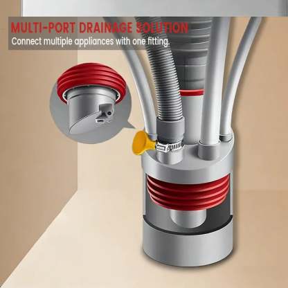 MULTI-PORT INTEGRATED DESIGN - Connect multiple appliances like sinks, washing machines, and water purifiers to one drain. The seamless one-piece molding prevents leaks, ensuring a clean, organized under-sink area without complex plumbing.