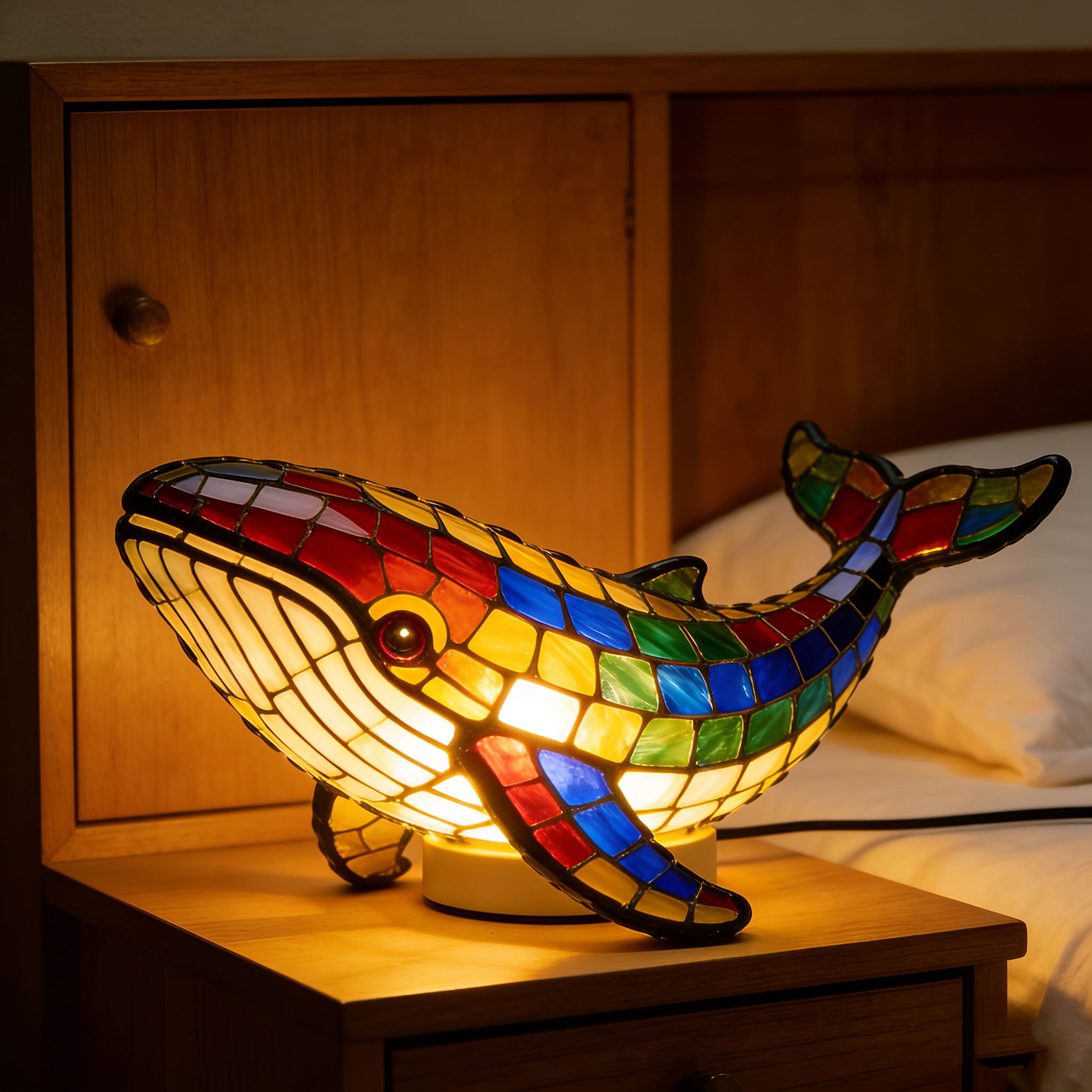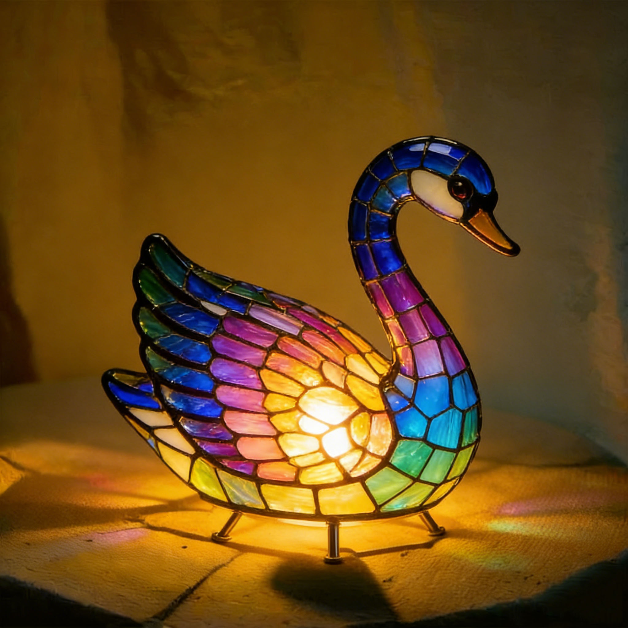 Single-Color Swan Stained Glass Mosaic Night Light