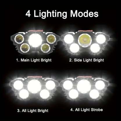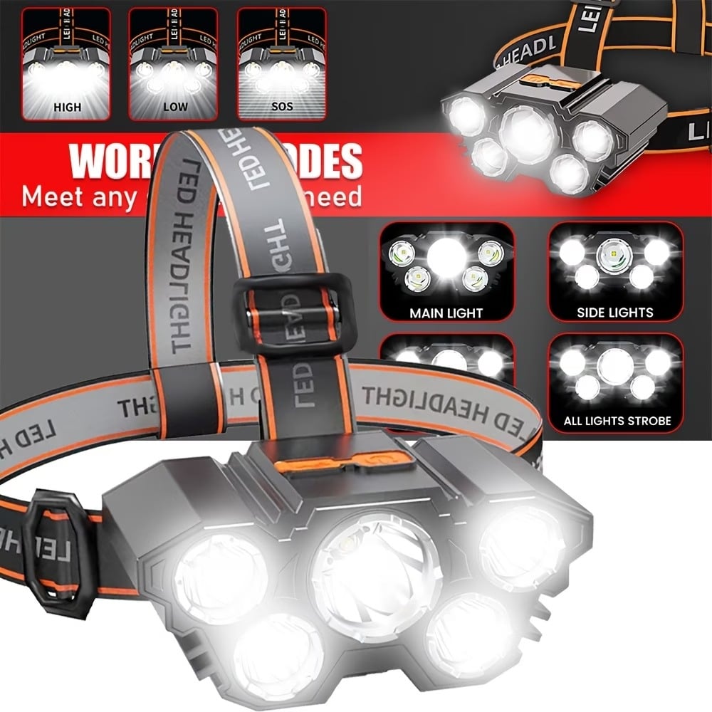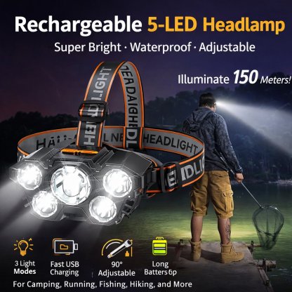 This powerful 5-LED rechargeable headlamp delivers bright, reliable illumination for all your outdoor and night-time activities.