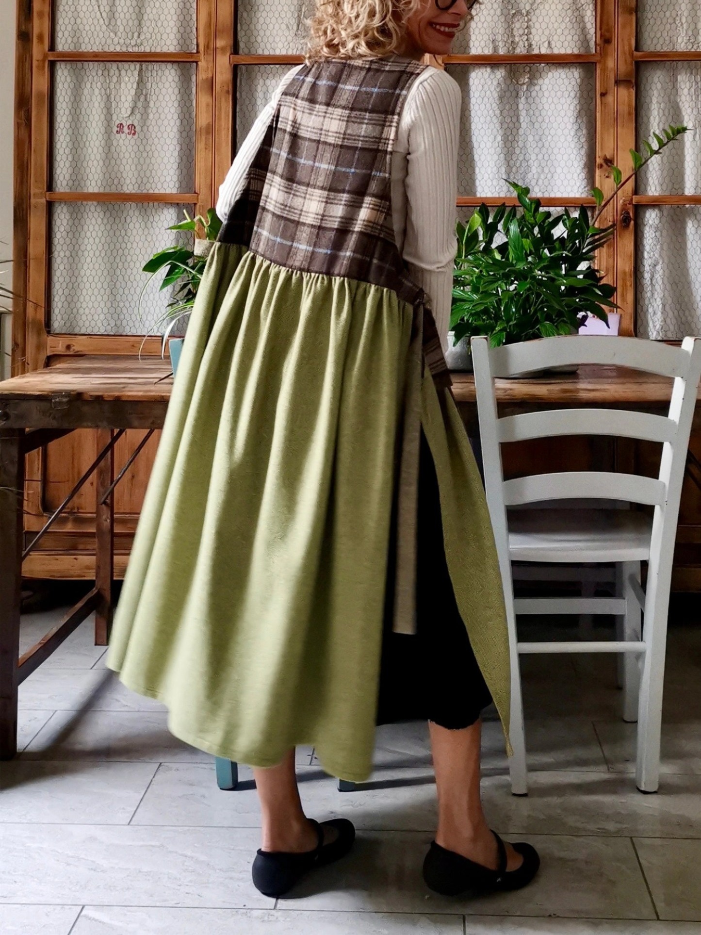 A youthful, cheerful, modern and classic apron at the same time, but without giving up a touch of romance.