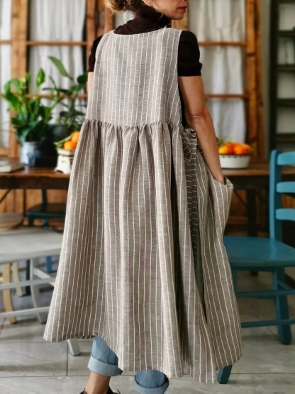Brown Striped Cotton Women's Apron