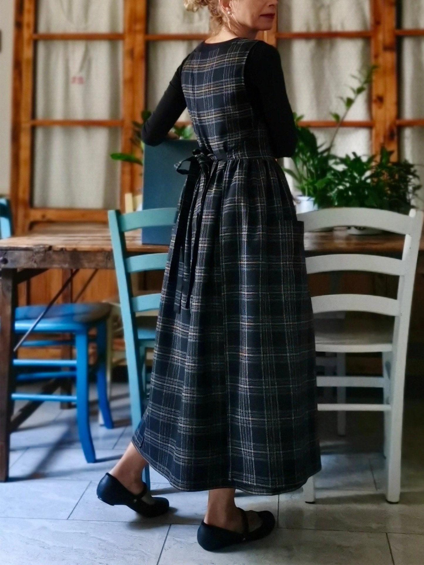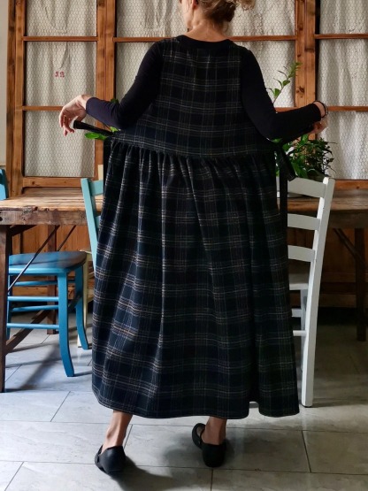 Another apron with many possible uses…this time in a beautiful tartan cotton fabric with a black background.