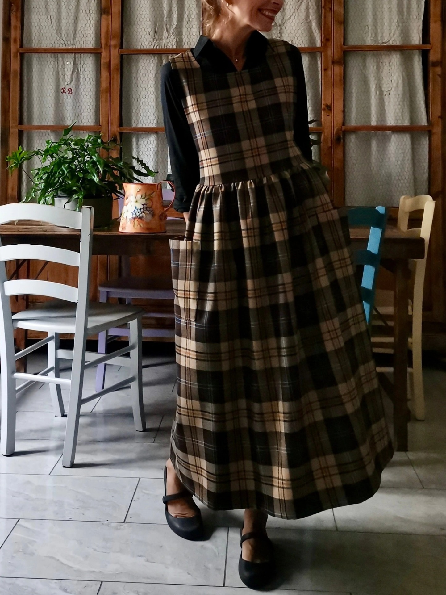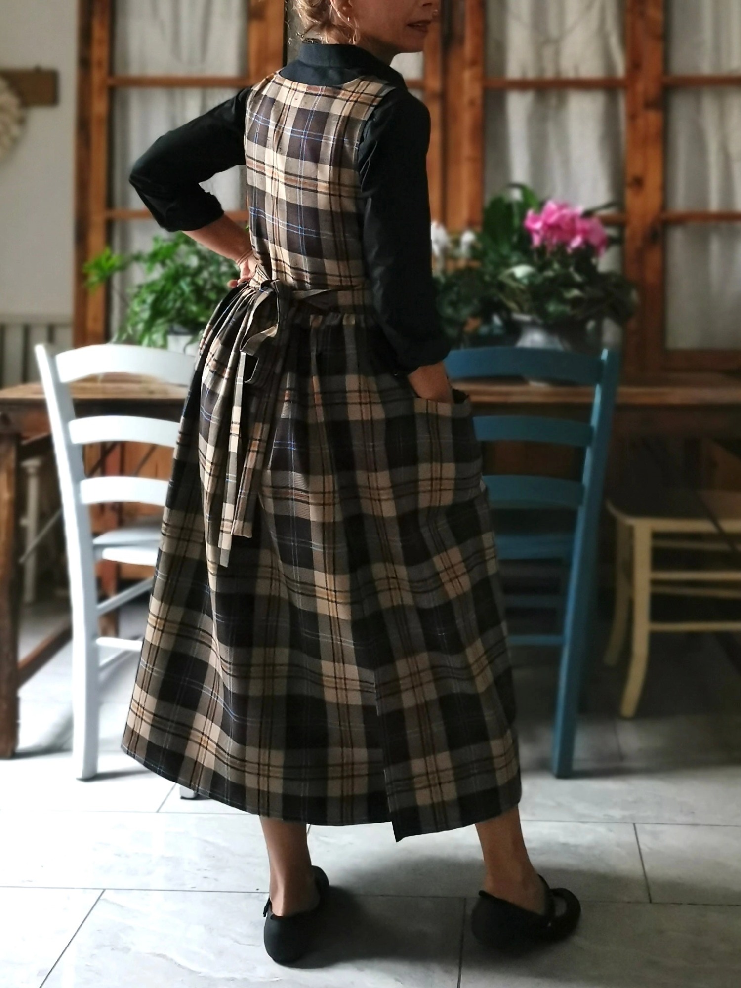 Another apron with many possible uses, this time made from a magnificent tartan fabric in shades of brown and beige… beautiful, soft, warm and incredibly comfortable.