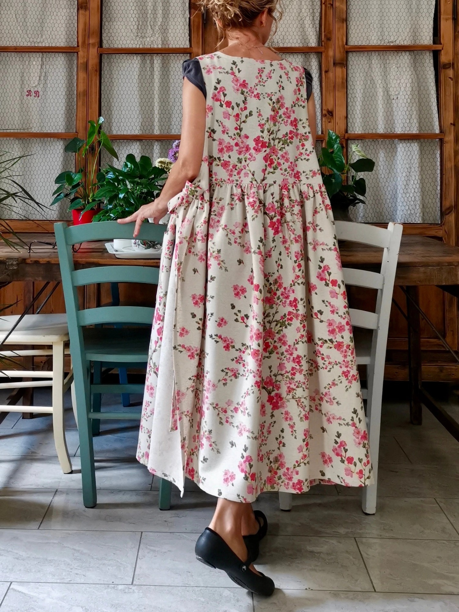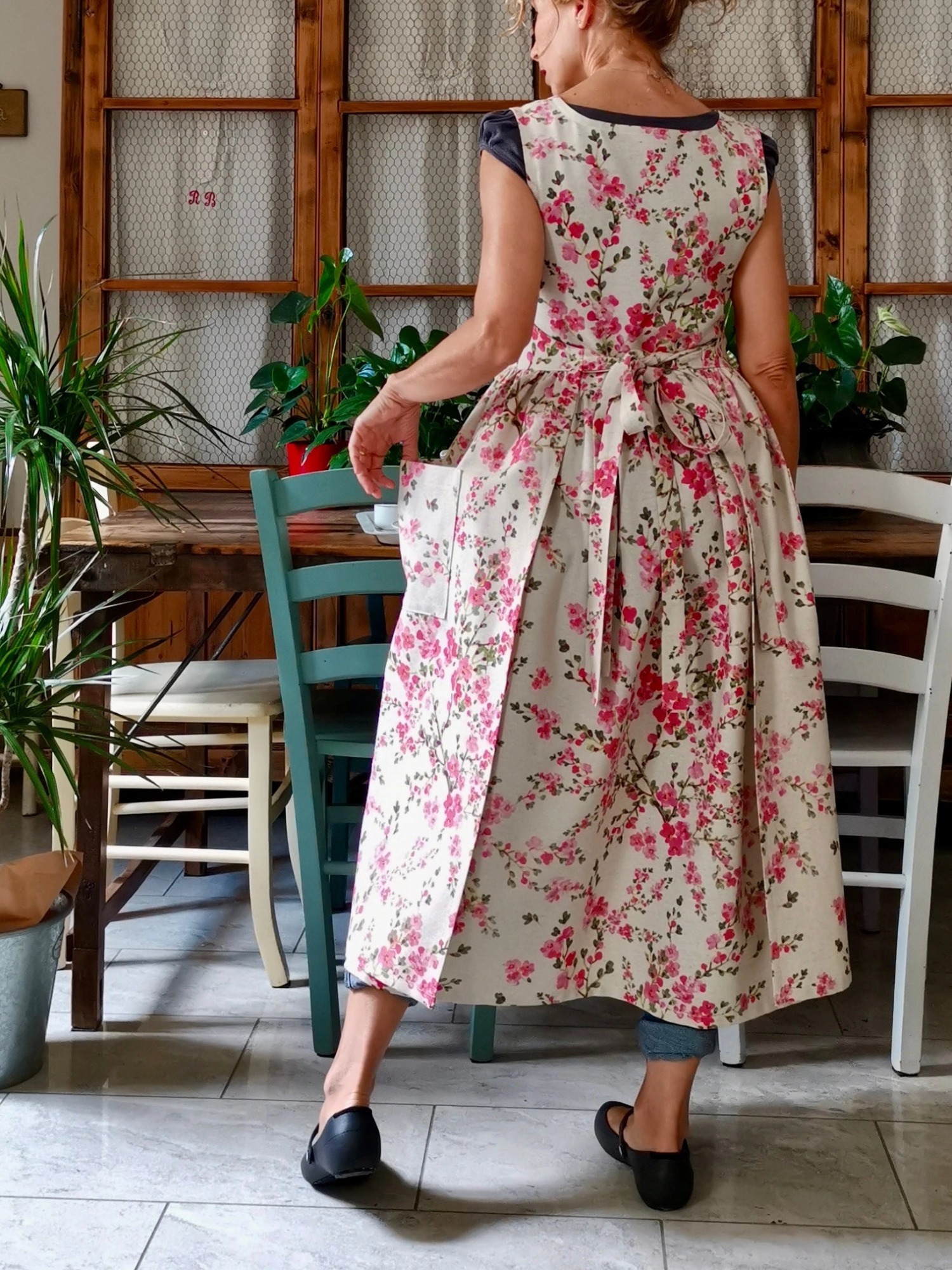 An apron for the most romantic, to wear in the kitchen, but above all at home or in the garden, and even outside.