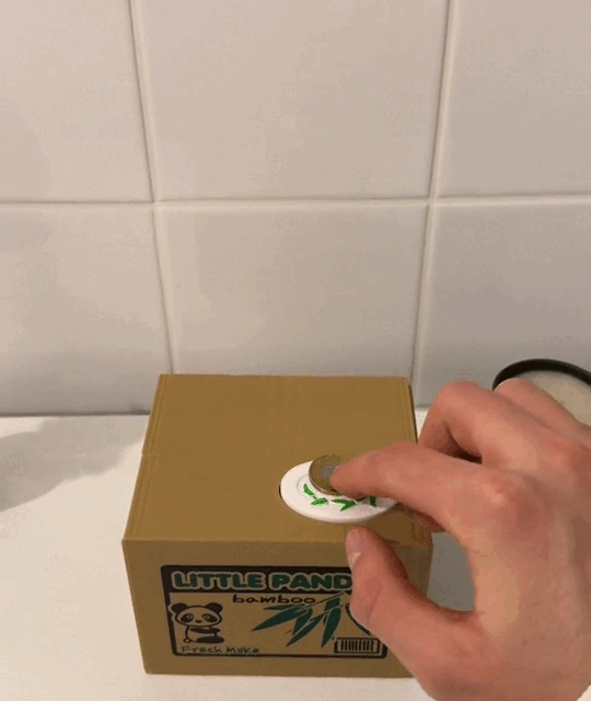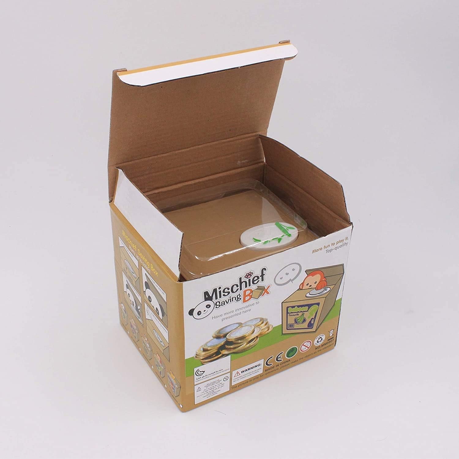 • Once you putting your coins on the button, it will take your money away secretly. This funny money box is a perfect gift for your child to save his/her pocket money. Please use 2*AA battery(not included). Material: ABS + electronic components. Size: 3.74"*4.52"*3.54". Use 2*AA battery(not included). A perfect gift saving pocket money for the kids. Package includes one pcs Panda bank.