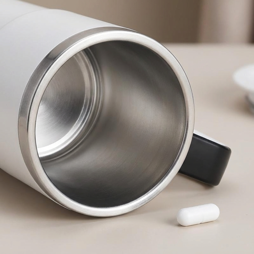 The integrated battery is charged via USB and provides enough power for many stirring cycles. The cup is designed to be leak-proof and is easy to clean.