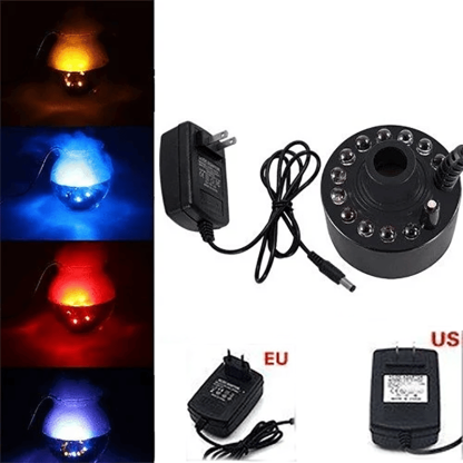 Package includes:12 LED light Ultrasonic Mist Maker Fogger*1PC