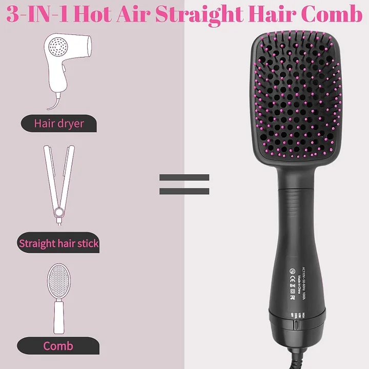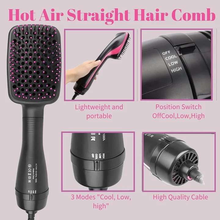 【3-in-1 Hot Air Brush】This one step hair dryer brush is a perfect replacement for hair dryers, combs and straighteners. Detangle, dry, and style your hair with one styling tool. Max drying power with less frizz and helps reduce hair damage. This professional hair dryer brush enables you to complete the exquisite and gorgeous salon blowout results efficiently in a shorter time.